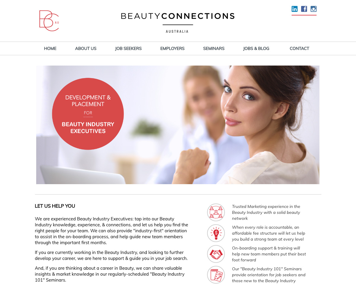 Beauty Connections is a beauty industry recruitment startup. We designed & developed their custom website, which includes an event booking system.